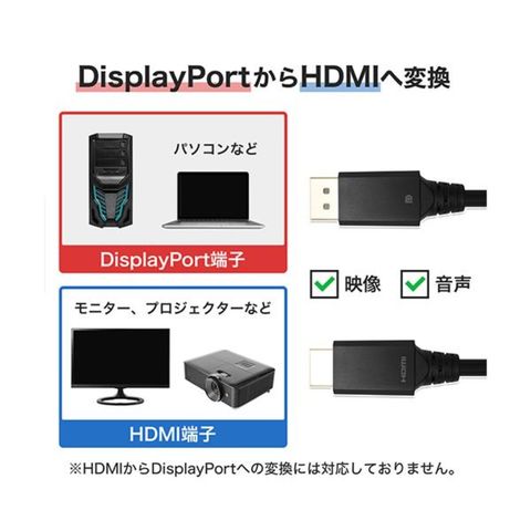 ※単方向信号設計のため、HDMIからDisplayPortへの変換には対応しておりません。