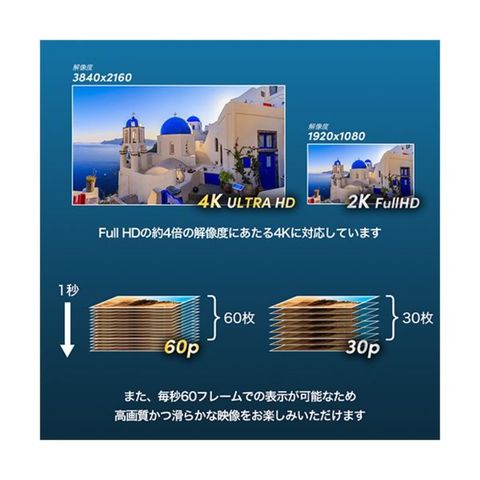 また、毎秒60フレームでの表示が可能なため、高画質かつ滑らかな映像をお楽しみいただけます。