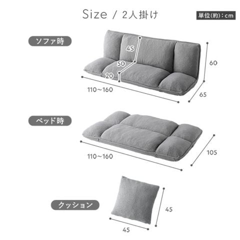 ソファ時:幅110~160×奥行65~105×高さ60cm(座面高:20cm)