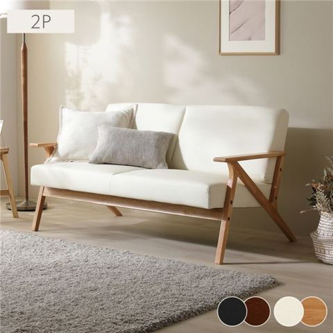 木肘合皮ソファ 2人掛け アイボリー ナチュラル脚 天然木 おしゃれ リビング お客様組立品 インテリア 【同梱不可】【代引不可】[▲][TP]のレビュー