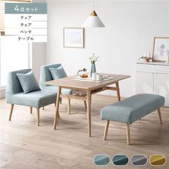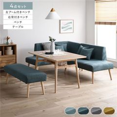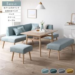 北欧ソファダイニング 5点セット 右カウチスタイル テーブル+左背付ベンチ+右アーム付ベンチ+ベンチ+スツール シーグリーン 組立 【同梱不可】【代引不可】[▲][TP]