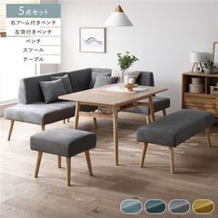 ・こちらは『5点セット 右カウチスタイル(テーブル+左背付きベンチ+右アーム付きベンチ+ベンチ+スツール)』の販売ページになります。