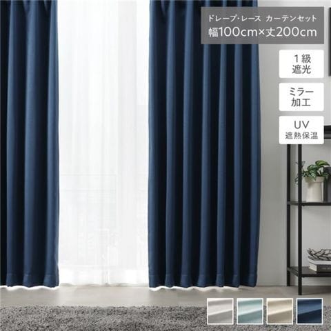 1級 遮光 カーテン レースカーテン セット 幅100×丈200cm 4枚入 ドレープ2枚 レース2枚 ミッドナイトネイビー 無地 洗える 【同梱不可】【代引不可】[▲][TP]