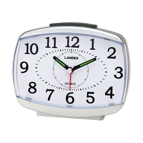 視認性の良い大きな文字盤の目覚まし時計。シンプルなデザインが置く場所を選びません。
