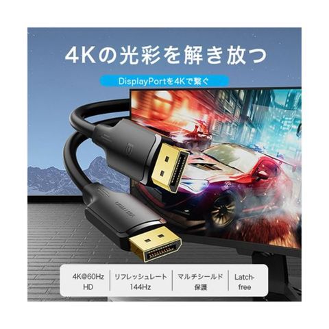 【3本セット】 VENTION DPケーブル Male to Male 4K対応 2m ブラック HA-0521X3 【同梱不可】【代引不可】[▲][TP]