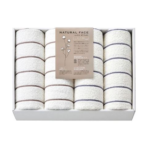 ナチュラルフェイス ボーダー バスタオル4P 60×120cm L9015599 【同梱不可】【代引不可】[▲][TP]