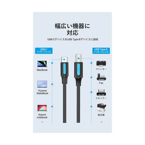 【5本セット】 VENTION USB 2.0 C Male to B Male 2Aケーブル 2m ブラック CQ-8326X5 【同梱不可】【代引不可】[▲][TP]