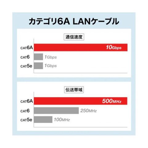 ■対応カテゴリ・規格 : カテゴリ6A(10GBASE-T)、カテゴリ6(1000BASE-TX)、カテゴリ5e(1000BASE-T)、カテゴリ5(100BASE-TX)、カテゴリ3(10BASE-T)適合