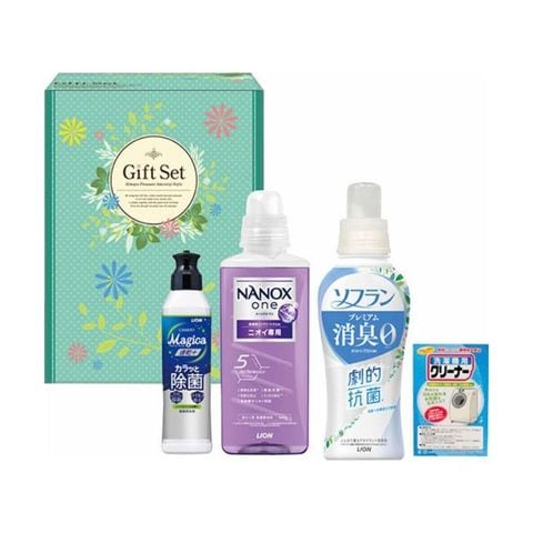 セット内容 : ライオンナノックスone(640g)・ライオンソフランプレミアム消臭(510ml)・ライオンチャーミーマジカ速乾+(プラス)(220ml)・洗濯機用クリーナーM×各1