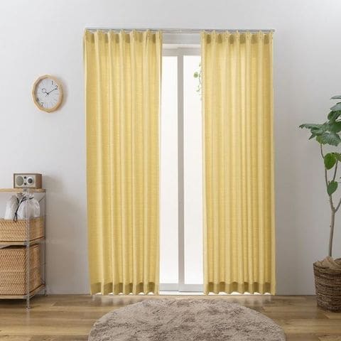 日本製 カーテン ドレープカーテン 防炎 洗える シンプル タッセル付き【幅100cm 長さ120cm 2枚 イエロー】 【同梱不可】【代引不可】[▲][TP]のレビュー