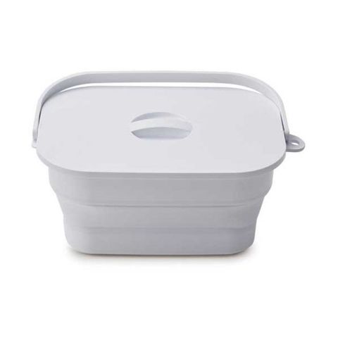 洗濯板付きの置き洗いバケツ。たたんでコンパクト。