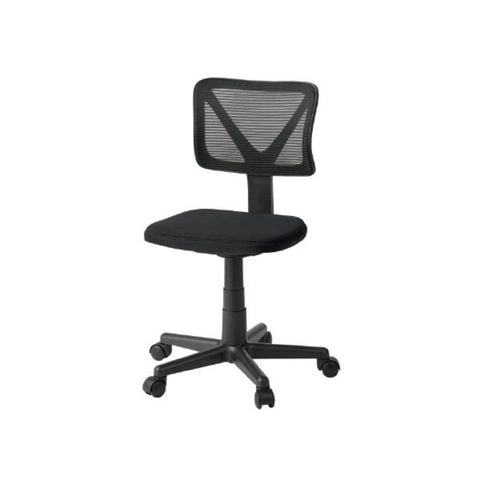 背がメッシュのコンパクトなOAチェア/ブラック。小さめなデスクでも場所を取らず収納可能です。座のクッションは取り外しでき、座のクッションなしでも使用が可能です。