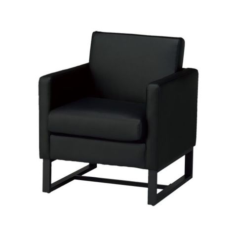 ブラック脚がポイントの応接「スクエアソファ」1人掛け/ブラック(PVCレザー)。PVCレザーのブラックはシックで高級感ある空間を演出します。