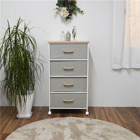 ●お部屋に馴染みやすい優しい色合いのファブリックチェスト4段。