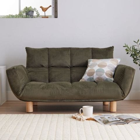 ふかふか カウチソファ コーデュロイカーキ 肘付 コンパクト 脚付 リクライニング フロアソファ ローソファ LIRAKU 【同梱不可】【代引不可】[▲][TP]