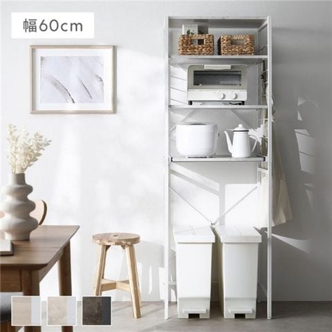 レンジラック ゴミ箱上収納タイプ 幅60cm ストーン調 スノーホワイト×ホワイト スチール 可能棚付 キッチン収納 キッチンラック 【同梱不可】【代引不可】[▲][TP]