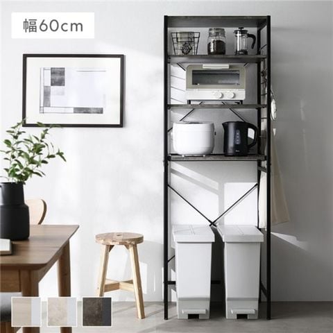 レンジラック ゴミ箱上収納タイプ 幅60cm ストーン調 ルナグレー×ブラック スチール 可能棚付 キッチン収納 キッチンラック 【同梱不可】【代引不可】[▲][TP]