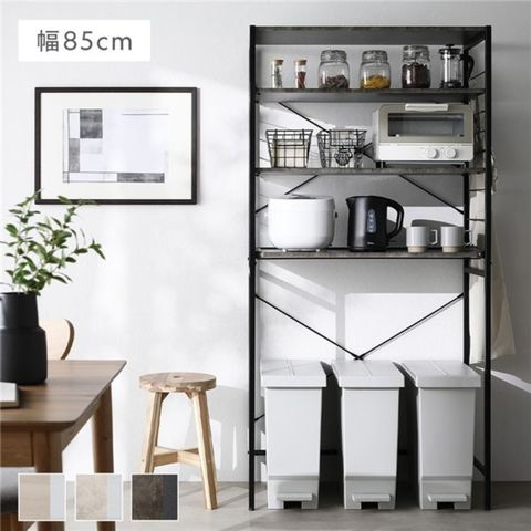 レンジラック ゴミ箱上収納タイプ 幅85cm ストーン調 ルナグレー×ブラック スチール 可能棚付 キッチン収納 キッチンラック 【同梱不可】【代引不可】[▲][TP]