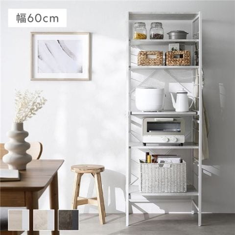 レンジラック シェルフタイプ 幅60cm ストーン調 スノーホワイト×ホワイト スチール 可能棚付 キッチン収納 キッチンラック 【同梱不可】【代引不可】[▲][TP]