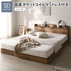 ベッド ダブル 国産ポケットコイルマットレス付 ハード シャビーオーク 低床 宮付 照明付 すのこ ローベッド ベット 【同梱不可】【代引不可】[▲][TP]