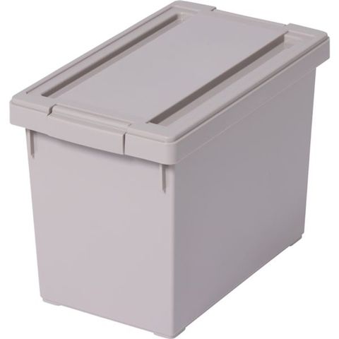 不透明で隠す収納ができる。カチッとしまるロック付きのフタで、ホコリなどの侵入を防ぐ。持ち運びも安心。
