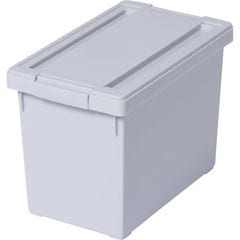 インテリアに馴染むスモーキーカラーのフタ付き収納ボックス。奥行30cmの「いれと庫 interior」シリーズ。Lサイズ。壁面収納や棚に置きやすい。