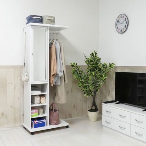 ミラー付ハンガーラック ホワイト 組立式 インテリア 【同梱不可】【代引不可】[▲][TP]