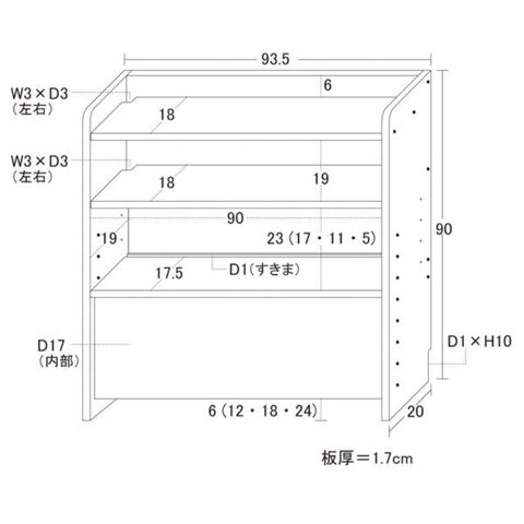 ■サイズ:約幅93.5×奥行20×高さ90cm