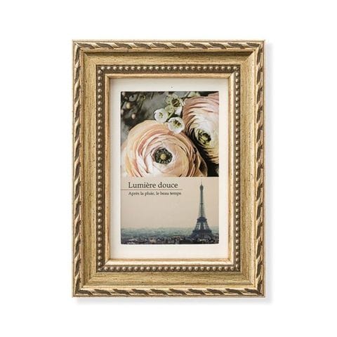 L判サイズ(:89×127mm)とサービスサイズ(85×115mm・89×119mm)のどちらも使えるアンティーク調のオシャレな模様付きフォトフレーム。