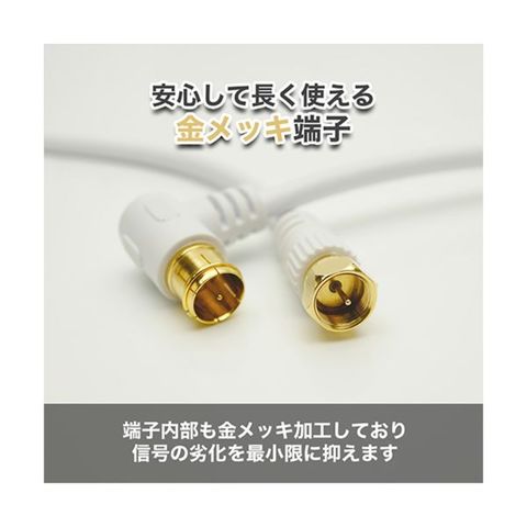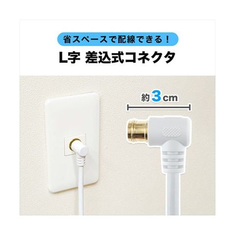 L字差込式コネクタは、狭い隙間にあるアンテナコンセントへの接続に最適です。機器にはもう一方のネジ式コネクタでしっかりと接続ができます。