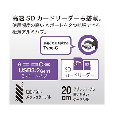 カードリーダー・ライター対応メディア : SD、SDHC、SDXC、microSD、microSDXC、microSDHC、miniSD※、miniSDHC※※miniSD、miniSDHCは、別売アダプターが必要。