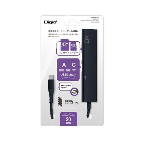 ナカバヤシ USB3.2Gen1Type-C3ポート(Cx1 Ax2)&SDカードリーダー・ライターアルミコンボハブ ブラック COM-C3SD143BK 【同梱不可】【代引不可】[▲][TP]