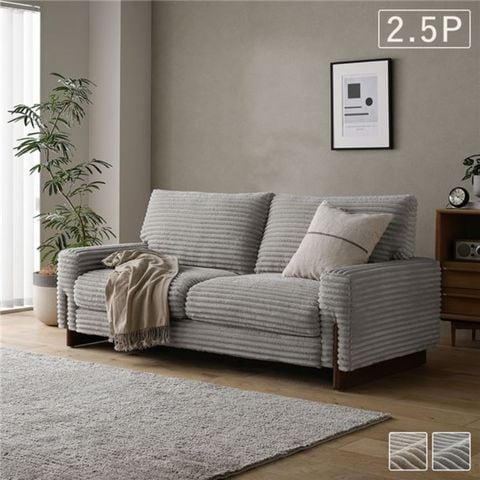 太畝コーデュロイ ソファ 2.5人掛け ソファー 単品 グレー 天然木 木脚 肘付き 羽毛使用 リビング ダイニング 【同梱不可】【代引不可】[▲][TP]