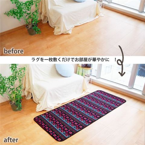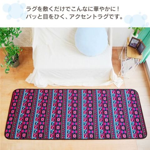 1畳サイズで場所を選ばない薄くて軽くてコンパクトなデザインラグです。懐かしさを感じさせるレトロな柄でラグを敷くだけでお部屋を華やかに見せます。スウェード調の短め毛足で髪の毛やゴミが絡まりにくいので、掃除もラクチン。オールシーズン使える万能ラグです。丸巻き梱包でお届けします。