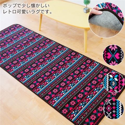 ラグ マット 絨毯 約70×185cm 1畳 ピンク 軽量 洗える ウォッシャブル レトロ マルチマット ハート 【同梱不可】【代引不可】[▲][TP]