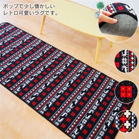 1畳サイズで場所を選ばない薄くて軽くてコンパクトなデザインラグです。懐かしさを感じさせるレトロな柄でラグを敷くだけでお部屋を華やかに見せます。スウェード調の短め毛足で髪の毛やゴミが絡まりにくいので、掃除もラクチン。オールシーズン使える万能ラグです。丸巻き梱包でお届けします。
