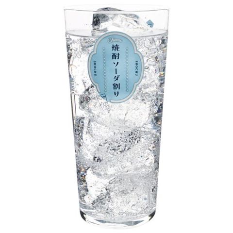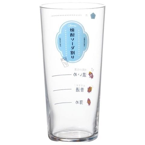 焼酎の濃さの目安目盛がついた、焼酎ソーダ割り専用グラス。イラストと大きな文字で見やすく分かりやすい。