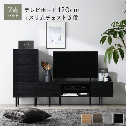 ワイド テレビボード + チェスト 2点セット テレビボード幅120cm + スリムチェスト3段 ブラック スチール 脚付 テレビ台 インテリア 【同梱不可】【代引不可】[▲][TP]のレビュー