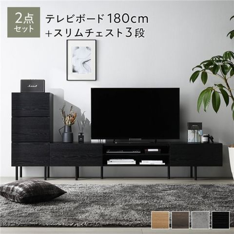 ワイド テレビボード + チェスト 2点セット テレビボード幅180cm + スリムチェスト3段 ブラック スチール 脚付 テレビ台 インテリア 【同梱不可】【代引不可】[▲][TP]のレビュー