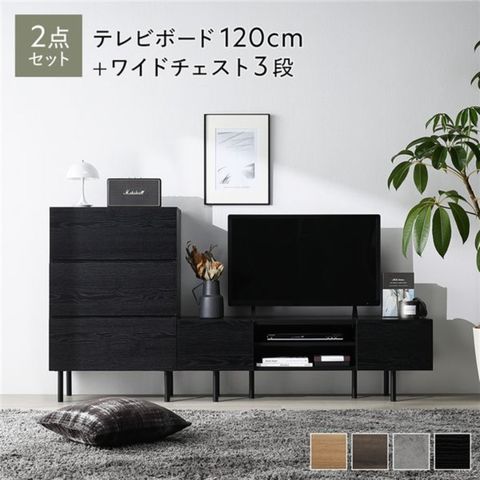 ワイド テレビボード + チェスト 2点セット テレビボード幅120cm + ワイドチェスト3段 ブラック スチール 脚付 テレビ台 インテリア 【同梱不可】【代引不可】[▲][TP]のレビュー