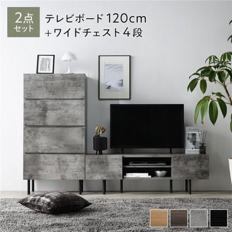 ワイド テレビボード + チェスト 2点セット テレビボード幅120cm + ワイドチェスト4段 ストーングレー スチール 脚付 テレビ台 【同梱不可】【代引不可】[▲][TP]