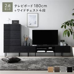 テレビボード180cm幅+ワイドチェスト4段:(1)76.5×41×25.5cm・29kg、(2)64.5×40×16cm・18.5kg、(3)107×40×9.5cm・18.5kg