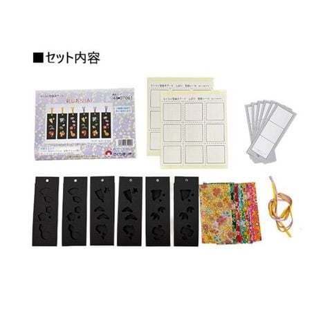 ●セット内容:説明書1枚、ちりめん布9枚、紫リボン1本、黄色リボン1本、しおりA2枚、B2枚、C2枚、型紙シール2枚、下絵6枚