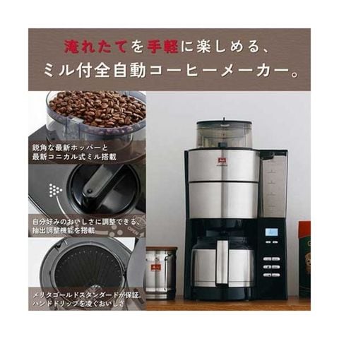 挽きたて、淹れたてを手軽に楽しめる、ミル付全自動コーヒーメーカー。自分好みのおいしさに調整できる、抽出調整機能を搭載。