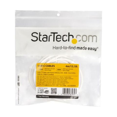 StarTech.com USB2.0 Type-Cケーブル 給電充電対応 Type C(オス)-Type C(オス) 4m ホワイトUSB2C5C4MW 1本 【同梱不可】【代引不可】[▲][TP]