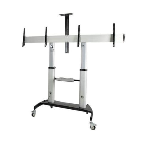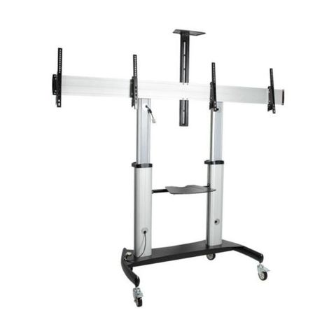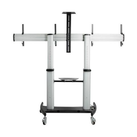 ●37型から60型までのディスプレイに対応する高耐久性アルミニウム性TVスタンド(テレビ1台あたり耐荷重50kg)。ロック可能キャスター4個、支柱のハンドルで移動が簡単。