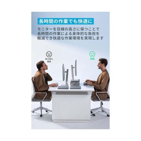 ●モニターを目線の高さに保つことで長時間の作業による身体的な負担を軽減することができ、快適な作業環境を実現します。