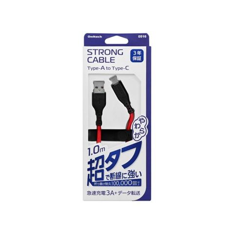 オウルテック やわらか超タフで断線に強い A to Cケーブル ブラック×レッド 1m OWL-CBA4CA10-BKRE 1本 【同梱不可】【代引不可】[▲][TP]
