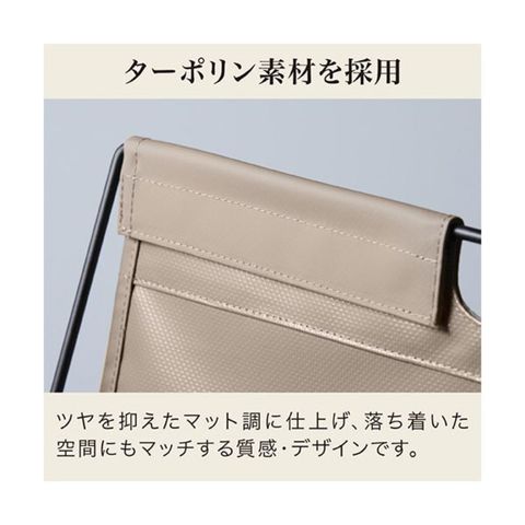 ●テントや横断幕に使われるターポリン素材を採用。水や汚れを弾きやすいため、飲み物をこぼしてしまったり、雨で濡れた荷物を置いたりしてもサッと拭き取ることができます。耐久性にも優れており、安心して長くお使いいただけます。