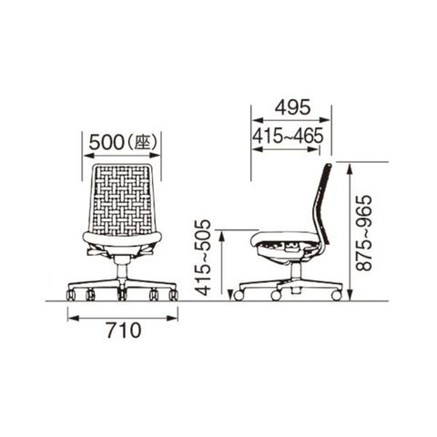 材質:背板:強化ナイロン、座・座板:PP、クッション:モールドウレタン、張地:ポリエステル、脚・足羽根:強化ナイロン、キャスター:ナイロン